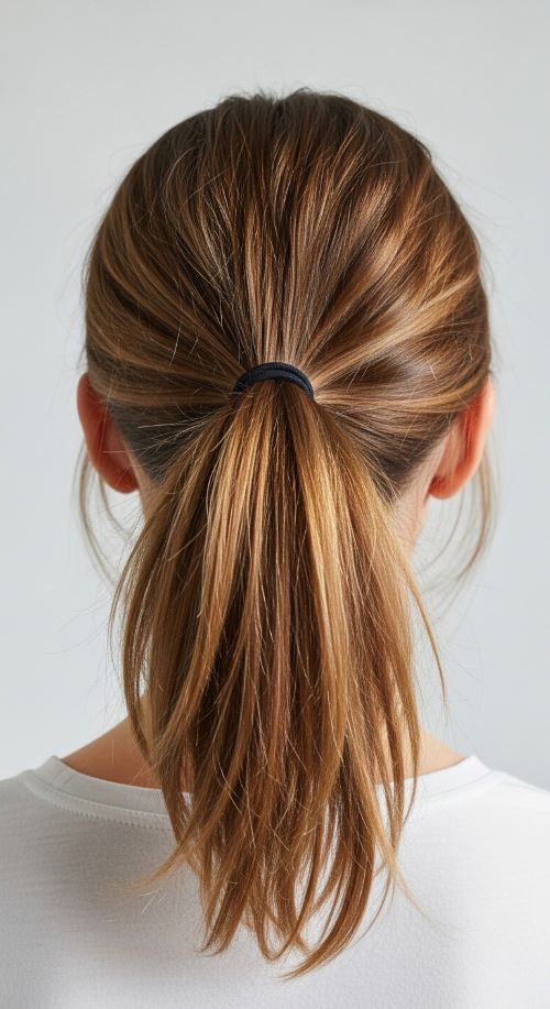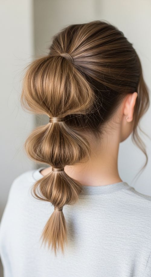 This playful style uses multiple elastics down the length of your ponytail. Tie your hair into a ponytail, then add elastics every few inches. Gently pull each section to create a “bubble” effect. Keep it loose for a messy finish. It’s fun, easy, and works well for long hair. You only need a few extra hair ties to achieve this look.