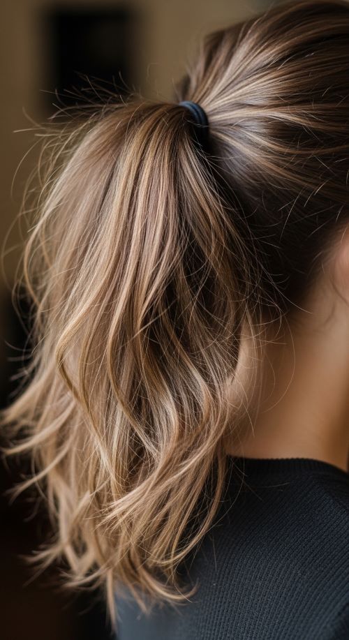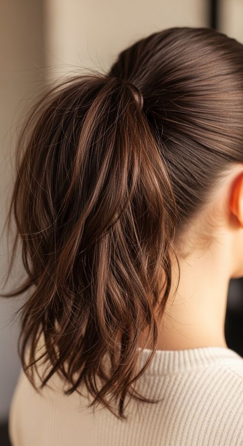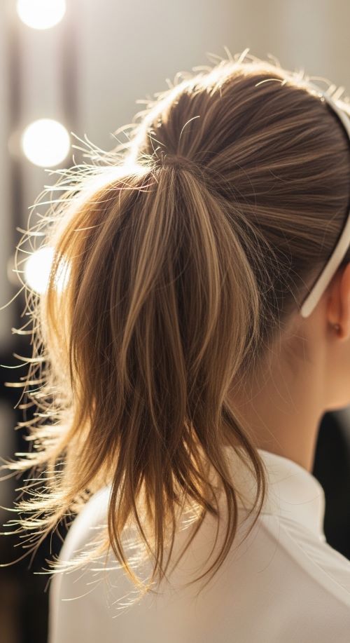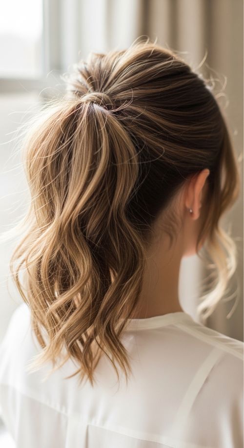 A high ponytail with volume adds instant energy to your look. Flip your head upside down while gathering your hair to create natural lift. Secure it at the crown, then gently pull sections to loosen it. Teasing the base can help if your hair is thin. Use a dry shampoo to add grip and texture without spending extra money on styling products. Keep a few strands loose for a soft finish. This style works great for casual outings or even workouts. It stays in place but still looks relaxed.
