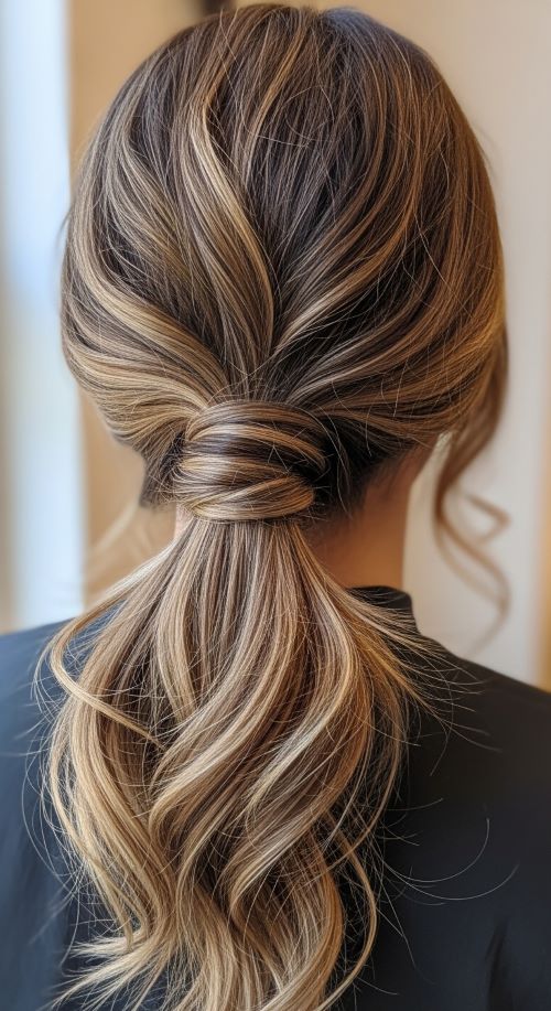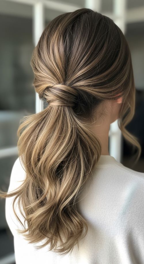 This style involves twisting sections before tying them into a ponytail. Divide your hair into two parts, twist them, then secure together. Pull gently to loosen the twists for a messy effect. It looks more detailed than a regular ponytail but takes only a few minutes.