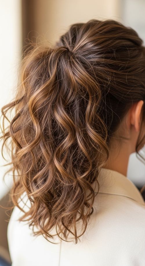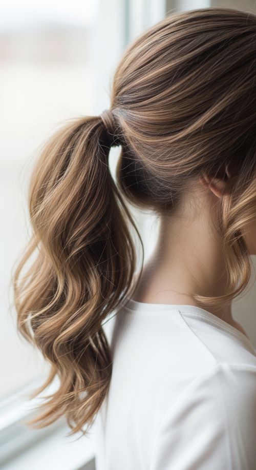 This style shifts your ponytail to one side for a soft, romantic feel. Gather your hair loosely and secure it just below one ear. Let a few strands fall around your face. You can curl the ends slightly for added texture, but it’s not required. This works well for both casual days and simple events. It’s quick and doesn’t require precision, making it perfect when you’re short on time.