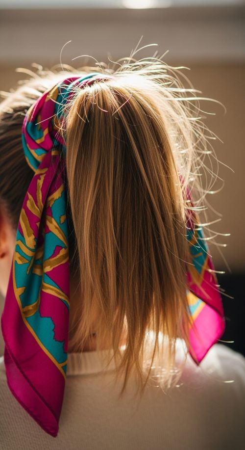 Wrap a scarf around the base of your ponytail for a simple upgrade. It adds color and personality. You can use affordable scarves from local shops. This works well with both low and high ponytails.