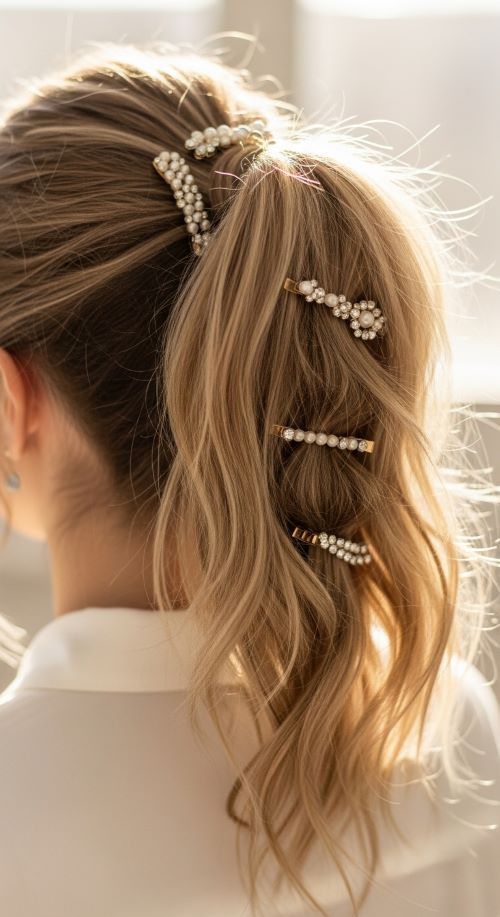 Adding a small braid around the base makes a simple ponytail feel styled. Start with a regular messy ponytail. Take a small section of hair and braid it, then wrap it around the elastic. Pin it in place with a bobby pin. This trick hides the hair tie and adds detail without effort. It works well for medium to long hair. You don’t need perfect braiding skills—slightly loose braids actually look better here. It’s a great way to change your look without extra tools.