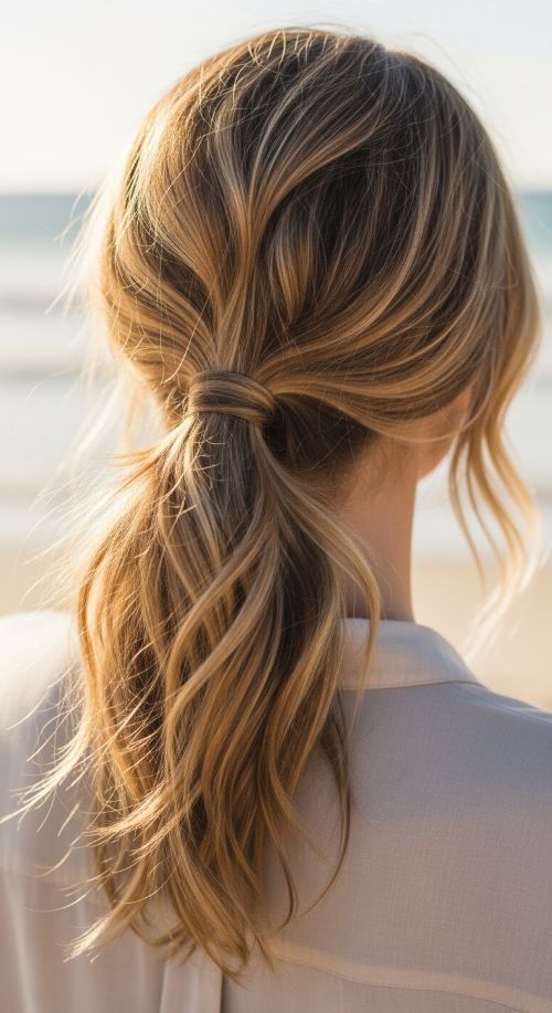 Use a salt spray or braid your hair overnight for waves. Tie it loosely for a relaxed look. It feels effortless and suits warm weather.