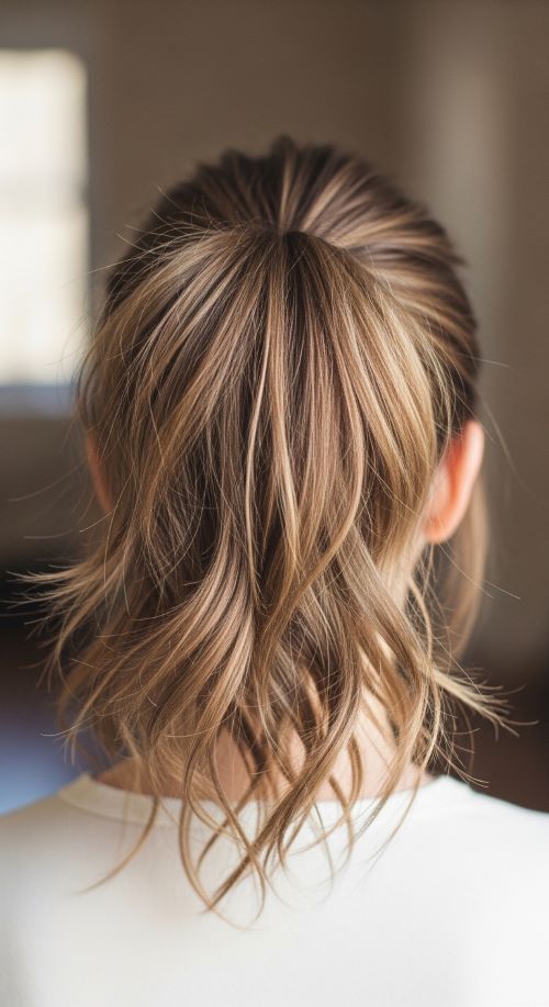 This style sits near the nape of your neck and feels relaxed yet put together. Start by loosely gathering your hair without pulling it too tight. Let a few strands fall naturally around your face. Use your fingers instead of a brush to keep the texture soft. If your hair is flat, lightly tease the crown for a bit of lift. A simple elastic works fine, but you can wrap a small section of hair around it for a cleaner look. This style works well with second-day hair, so you don’t need to wash or restyle from scratch. A light mist of hairspray helps hold everything in place without making it stiff. It’s quick, simple, and perfect for everyday wear.