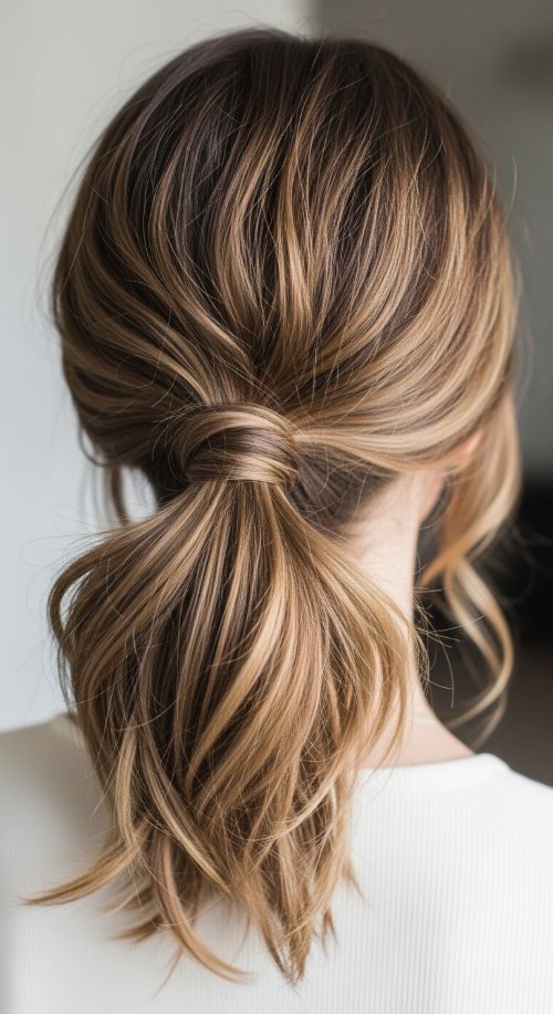 This is your go-to option. Gather your hair quickly, tie it, and loosen it slightly. No tools needed. It’s practical, quick, and always looks good.