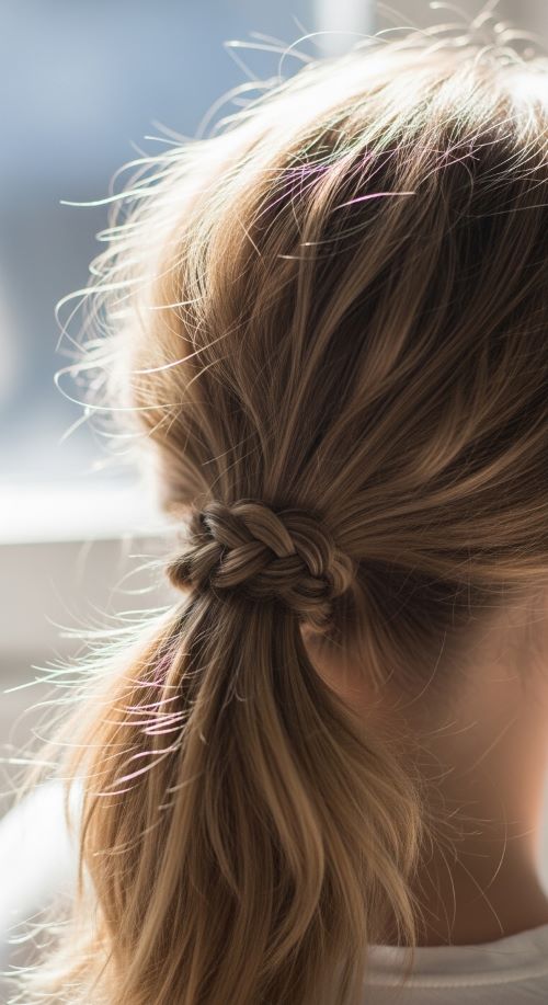 Instead of a regular tie, knot sections of your hair together before securing. It creates a unique look without tools. Keep it loose so it doesn’t feel tight.
