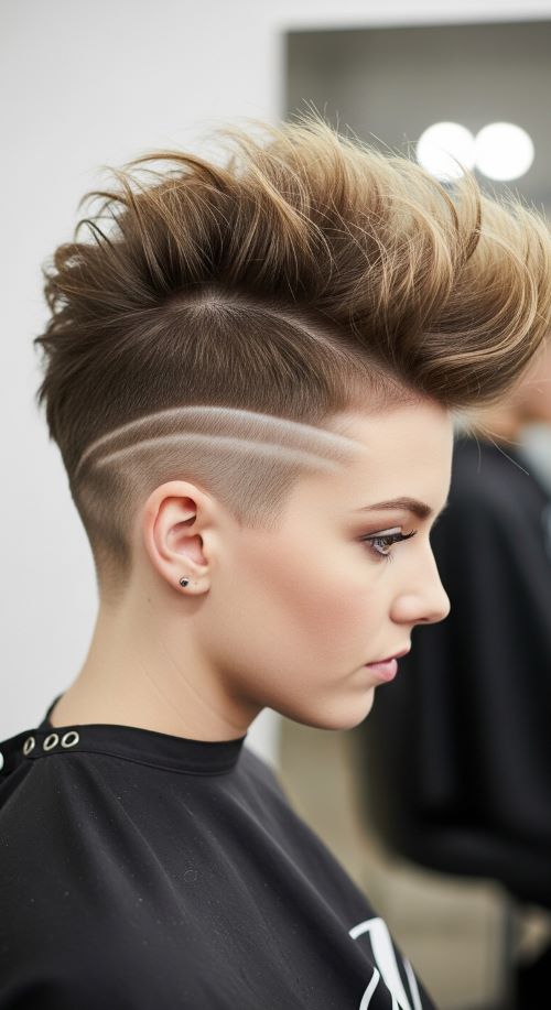 Mohawk undercuts are bold and edgy. Shave the sides completely and style the center strip with gel or hairspray for hold. This style works for concerts, festivals, or expressive personal style statements. Regular trims on the shaved sides and occasional touch-ups on the top maintain the look. It’s a standout style that’s easy to replicate at home with basic tools.