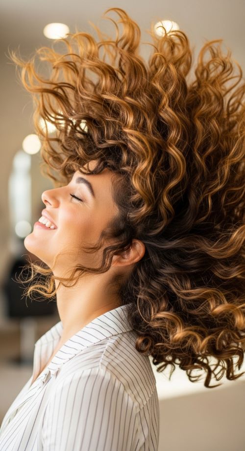 Finish with a flexible-hold hairspray that keeps curls in place while allowing natural movement. The goal is bounce, not stiffness.