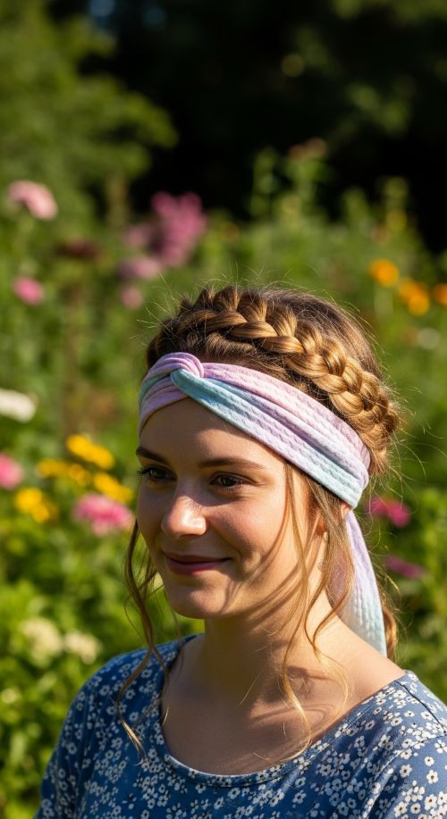 DIY idea: Braid a small section of hair and wrap it under a scarf headband. Works well for casual outings or springtime events, giving your look a soft, romantic touch.