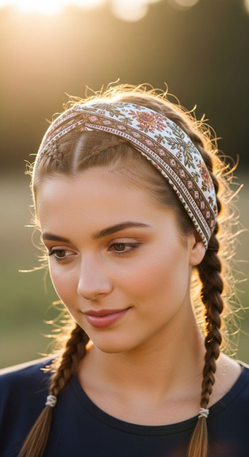 Create two small braids on each side of your face. Pull them back and secure them under a wide fabric headband. This adds a relaxed, bohemian flair to your look.