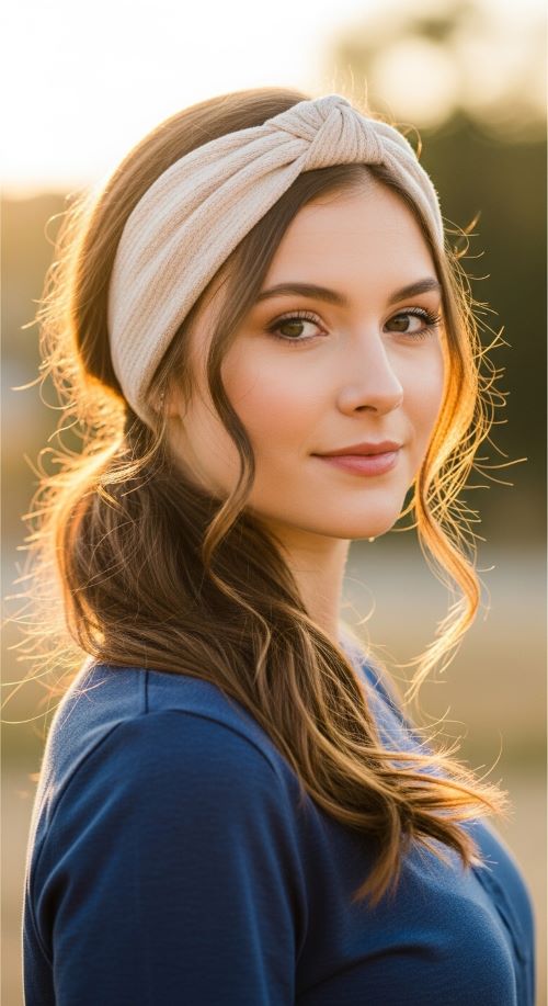 Budget hack: A thin scarf tied into a knot works beautifully as a DIY headband. This style is ideal for casual meet-ups, shopping trips, or busy workdays. It looks effortless while holding your hair back.