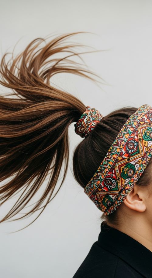 DIY approach: Twist a scarf around ponytail for an easy and inexpensive upgrade. Perfect for casual or sporty days.