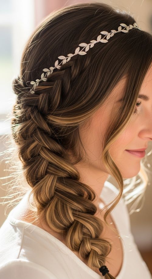 18. Side Braid with Headband Accent