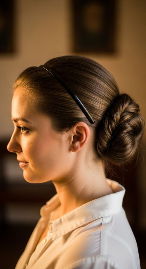22. Twisted Low Bun with Simple Headband