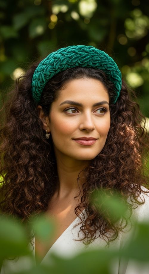 Budget tip: Old scarves tied flat can mimic a crown headband. This is excellent for curly hair as it keeps curls in place while giving a stylish, effortless flair.