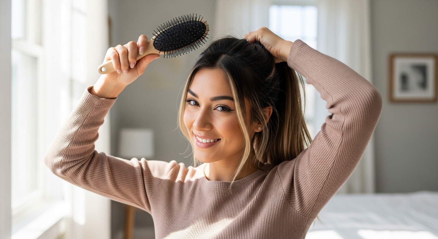 The foundation of any stunning ponytail is hair that’s ready to style. Wash and condition your hair first—clean hair adds shine and smoothness, and using a lightweight conditioner prevents your hair from getting weighed down. Blow-dry your hair for extra volume, either upside down or using a round brush at the roots to lift it. Even straight hair benefits from a little texture, so lightly mist a texturizing spray or dry shampoo to give your hair grip, which helps your ponytail hold better.