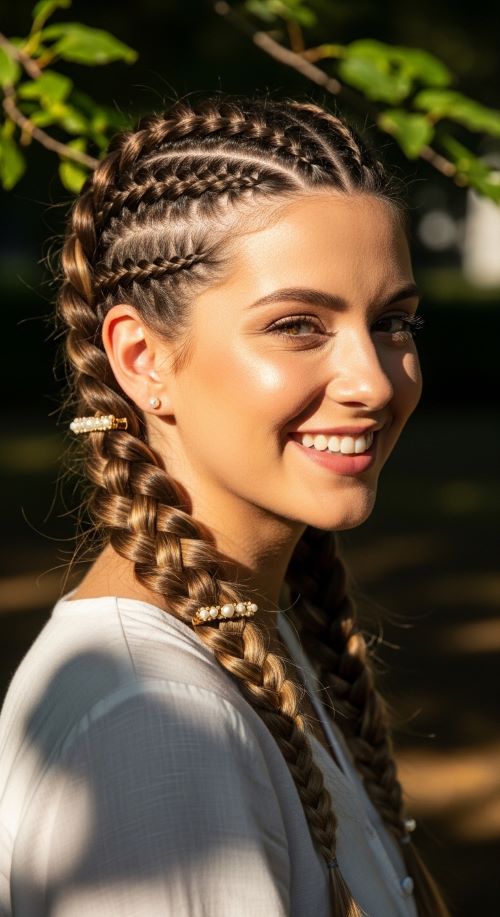 Smooth flyaways with a bit of hairspray or styling gel. For extra flair, add small hair accessories like clips, ribbons, or beads. To make your braids last all day, avoid touching them too much and keep hair slightly damp or textured. Sleeping with a silk pillowcase can also prevent frizz if you plan to keep the braids overnight.