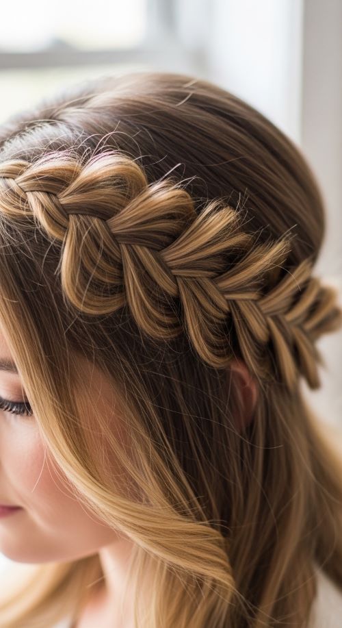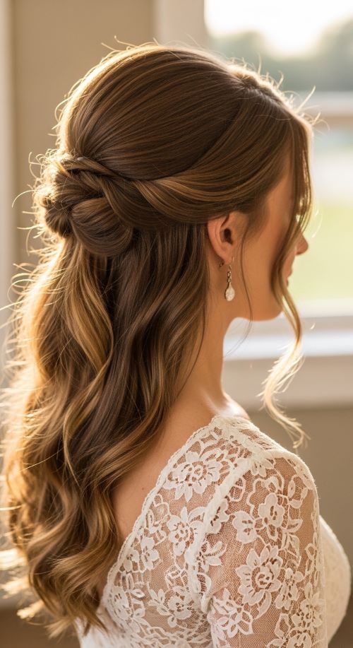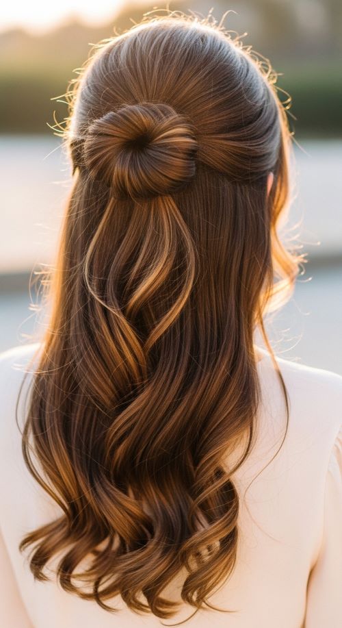 The fishtail half-up adds a subtle twist to your routine. Create a small fishtail braid on the top section and secure it at the back, leaving the rest loose. Budget-friendly tip: Practice on dry hair without products to keep it simple. This style works for medium to long hair and adds an interesting texture without much effort. Perfect for casual outings, family gatherings, or online meetings.