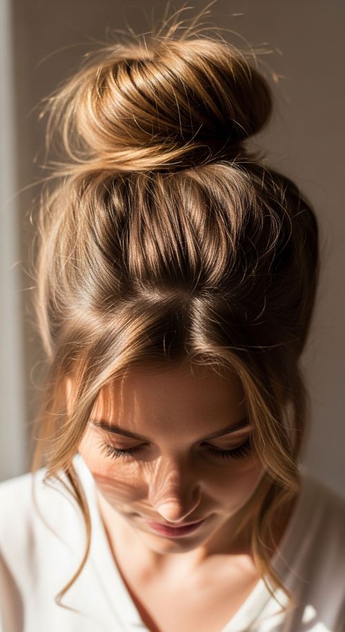 The top knot is a classic, quick option. Pull hair to the crown, twist into a loose knot, and secure with a hair tie or pins. Don’t worry if a few strands escape—they add charm. For extra texture, lightly spritz with dry shampoo or leave-in conditioner. This style works on all hair lengths and keeps hair completely off the face. Budget-friendly tip: Use a scrunchie for comfort and extra volume. A top knot can be worn for casual outings, work-from-home days, or even as a chic look for quick errands.
