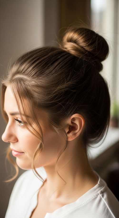 The quick top knot is a no-fuss solution for busy days. Pull hair to the crown, twist, and secure with a hair tie or pins. Allow small strands to fall naturally for softness. Budget-friendly tip: Use a scrunchie for comfort and added volume. This style works on most hair lengths and types, perfect for workouts, errands, or casual home days. Minimal effort delivers a clean, stylish look.