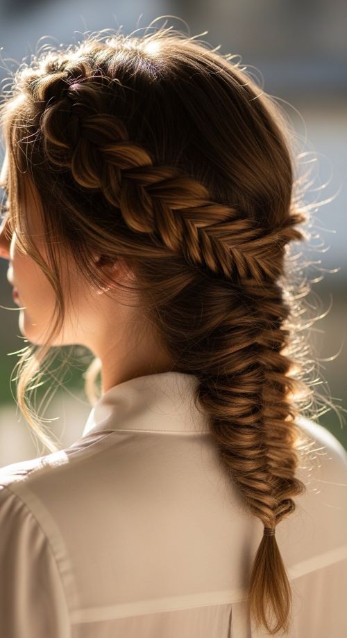 Fishtail braids look complicated but are simple once you get the hang of it. Divide hair into two sections, then cross small pieces from each side over to the opposite section. Repeat until you reach the end and secure with an elastic. Loosen the braid slightly for a casual feel. Budget-friendly tip: Practice on dry hair without heat styling to save time and prevent damage. This style is perfect for a polished yet relaxed appearance for school, work, or weekend outings.