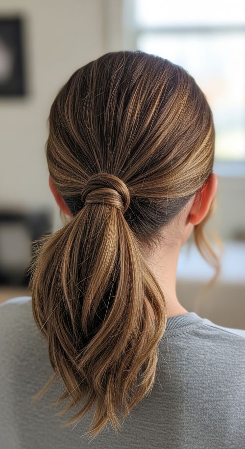The sleek low ponytail is timeless and simple. Brush your hair down, gather it at the nape, and secure it with a basic hair tie. Wrap a small section around the elastic for a polished look. Lightly mist with a bit of water or leave-in conditioner to smooth flyaways. This hairstyle works for workdays, casual outings, or evening plans when you want something tidy without much effort. Budget-friendly tip: Use a regular toothbrush sprayed lightly with hairspray to tame any stray hairs. The style feels elegant but requires only minutes to achieve, making it ideal for everyday routines.