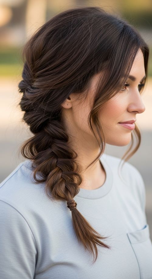 The loose side braid is effortless. Sweep hair to one side, braid loosely, and secure at the end. Budget-friendly tip: No extra products are needed; slightly tugging at sections adds volume. Works for medium to long hair and is perfect for casual wear, outdoor activities, or simple daily styling.