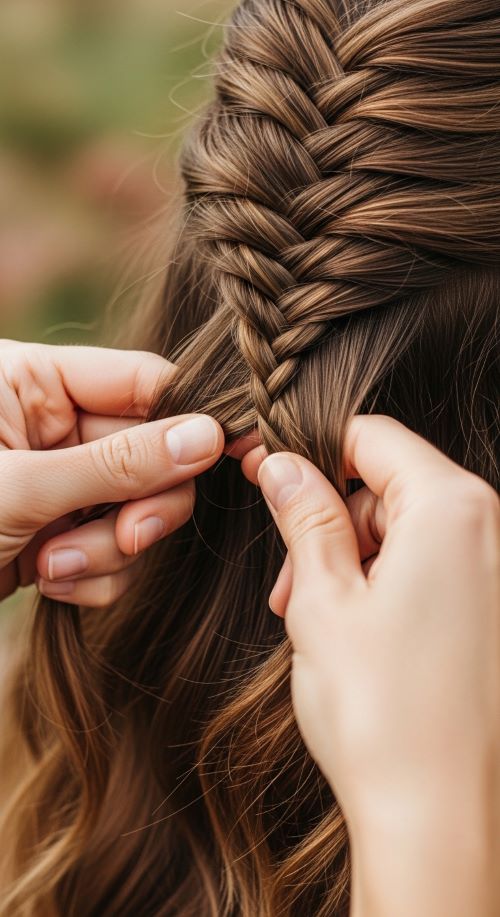 To create the popular textured look seen on Pinterest, gently pull on the outer edges of the braid to loosen it. This technique, often called pancaking, helps the braid look fuller and more voluminous. Be careful to pull lightly so the braid stays intact while still appearing soft and relaxed.