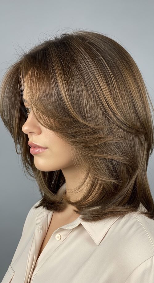 Feathered layers are ideal for fine hair because they lift strands without removing bulk entirely. Blow-dry using a round brush, focusing on flipping the ends out slightly for movement. This cut adds visual thickness while keeping hair manageable. Feathered layers are easy to maintain and style at home, making fine hair appear lighter and fuller at the same time.