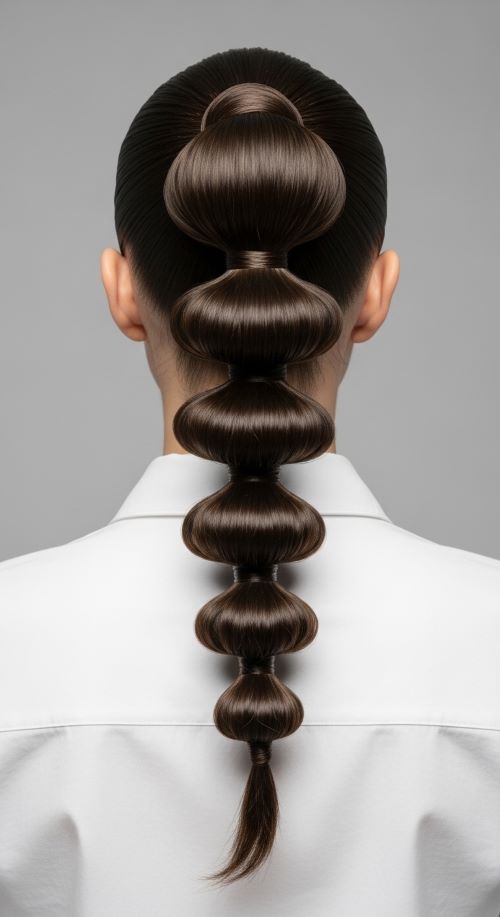 The bubble ponytail stands out while still being easy to create. It works well for parties or fashion-forward looks. Begin with a high or mid ponytail.
