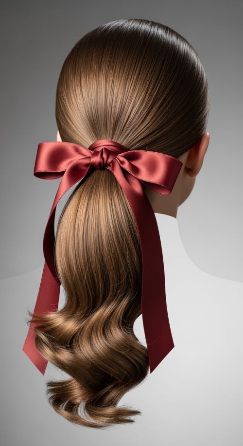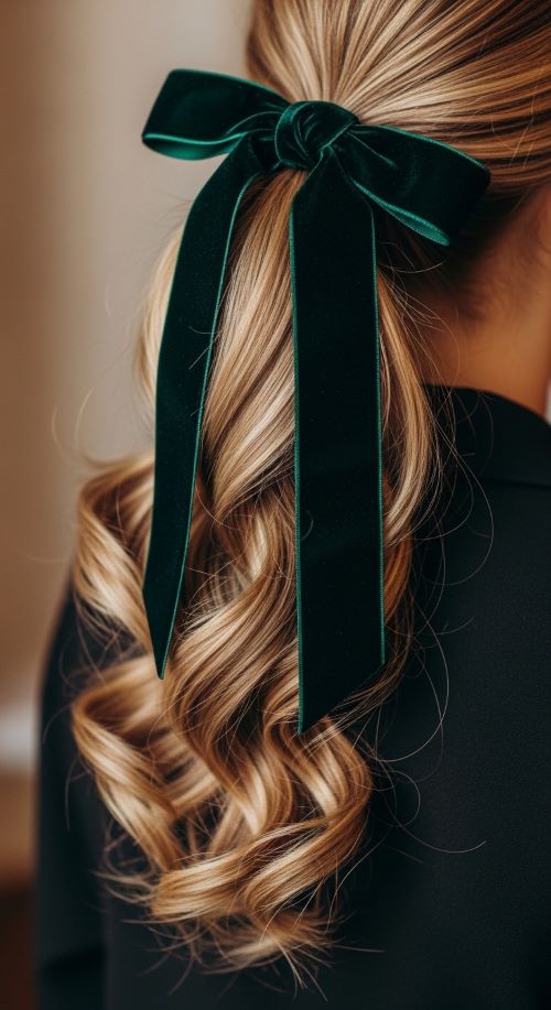 Velvet ribbons add a rich, elegant feel. Start with a low ponytail at the nape of the neck. Curl the ponytail ends to create gentle waves. Tie a velvet ribbon around the elastic and form a neat bow. Dark shades like black, burgundy, or navy look especially elegant. Velvet ribbons are inexpensive and easy to reuse. This small accessory can turn a simple ponytail into a polished hairstyle suitable for special occasions.