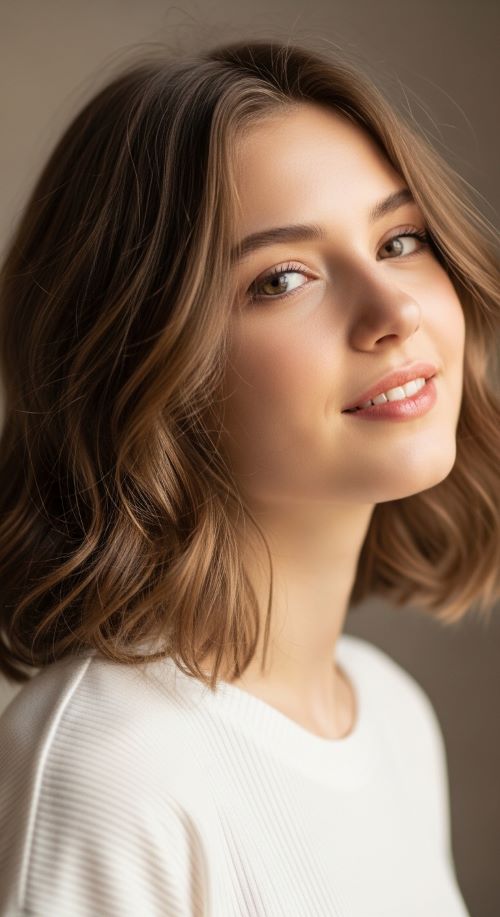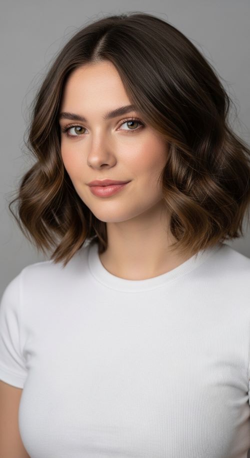 A blunt cut gives thick wavy hair a clean and structured look, but it can feel heavy if there are no layers involved. That’s why hidden layers underneath are so helpful. They remove excess bulk without changing the sharp outer shape of the haircut. This allows you to keep a polished appearance while making your hair easier to handle. The ends look neat, while the inside feels lighter and less dense. This style works well for people who prefer a more refined look but still want their waves to show. For styling, you can air dry your hair for a natural finish or use a blow dryer for a smoother look. A small amount of serum helps control frizz and adds shine. Since the shape holds well over time, you don’t need frequent trims, making it a practical and cost-effective choice.