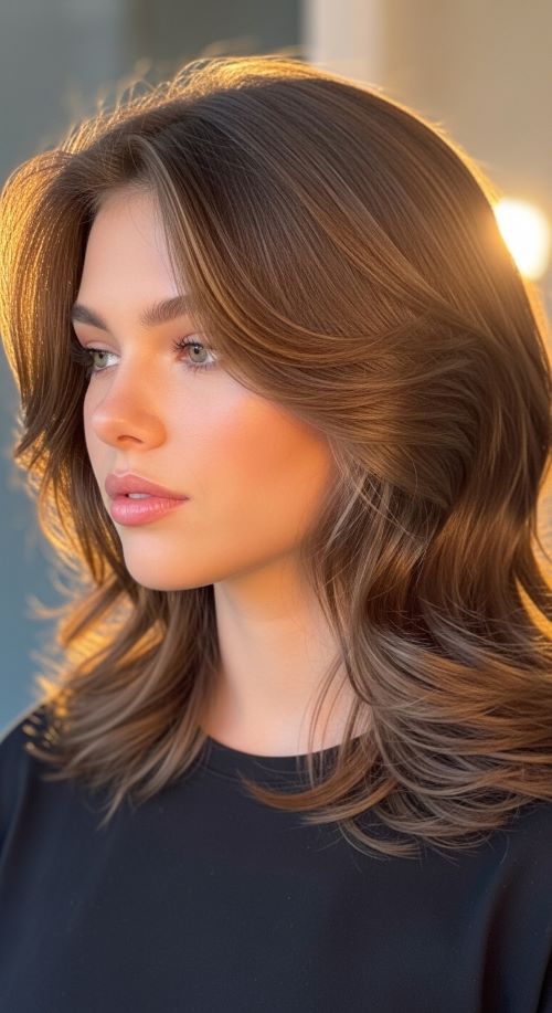 A layered cut combined with balayage adds depth and dimension to thick wavy hair. The layers create movement, while the color highlights the natural texture. This makes your hair look more detailed even with simple styling. You don’t need to use many products. A small amount of leave-in conditioner is enough. Let your hair air dry to show off the color and layers. This style looks polished without requiring daily effort.