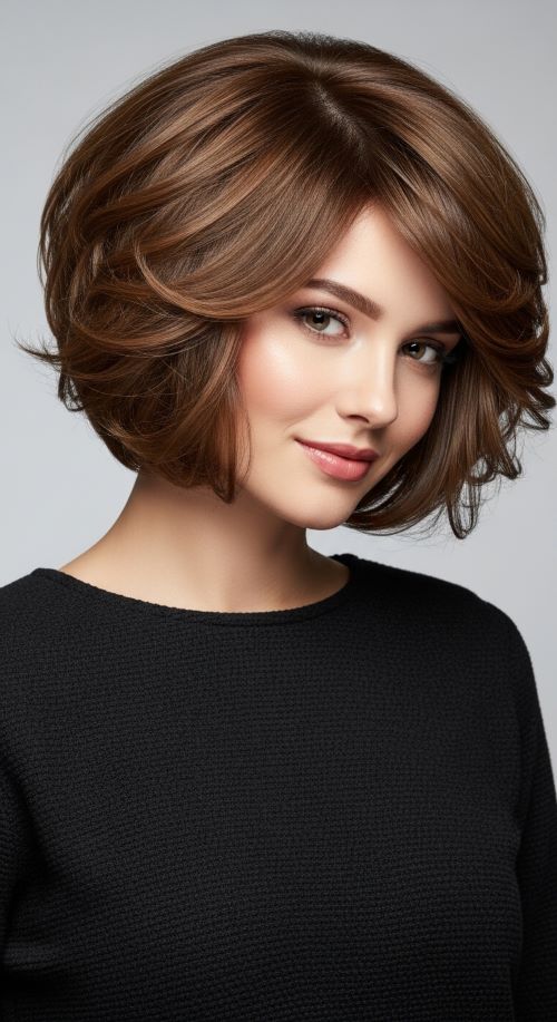A rounded bob shapes the hair into a soft curve, which helps control volume and gives a neat appearance. This cut works well for thick wavy hair because it distributes the weight evenly. The result is a balanced look that doesn’t feel too heavy on one side. Styling is simple. Use a small amount of cream to define your waves and let them dry naturally. This cut doesn’t require much effort and stays in shape for a long time.