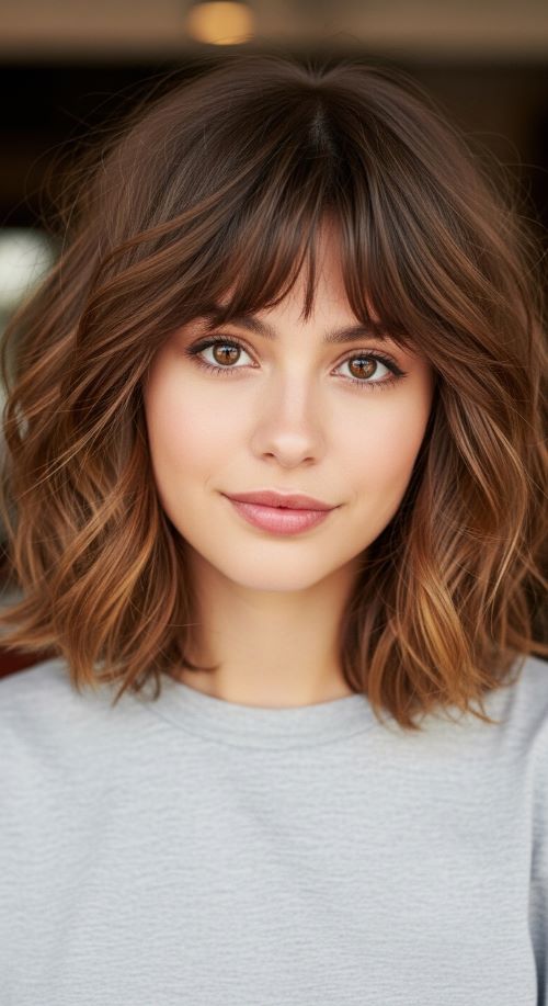 Curly bangs can add a playful and soft touch to thick wavy hair when done correctly. The key is to keep them light and not too dense. When paired with layers, they blend into the rest of your hair instead of sitting heavily on your forehead. This makes them much easier to manage. Let your bangs air dry so they keep their natural shape. Avoid over-styling them with heat tools. If needed, you can trim them at home using small sections to keep the length in check. This style adds personality to your haircut without requiring extra effort or expense.