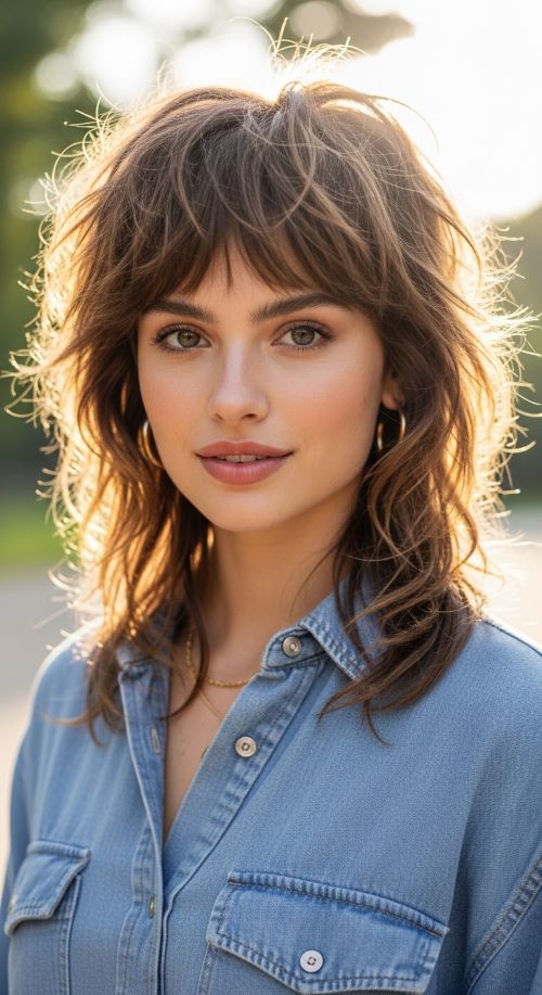 The wavy wolf cut is a modern style that works especially well with thick hair. It combines elements of a shag and a layered cut, with shorter layers on top and longer pieces at the bottom. This structure removes bulk while adding volume where it’s needed most. Thick wavy hair naturally supports this shape, making it easier to maintain. The slightly messy finish is part of the style, so you don’t need to spend time making it look perfect. For daily care, apply a small amount of mousse or styling cream and scrunch your hair. Let it air dry for the best results. This cut is ideal if you want something trendy but still low effort and affordable to maintain.