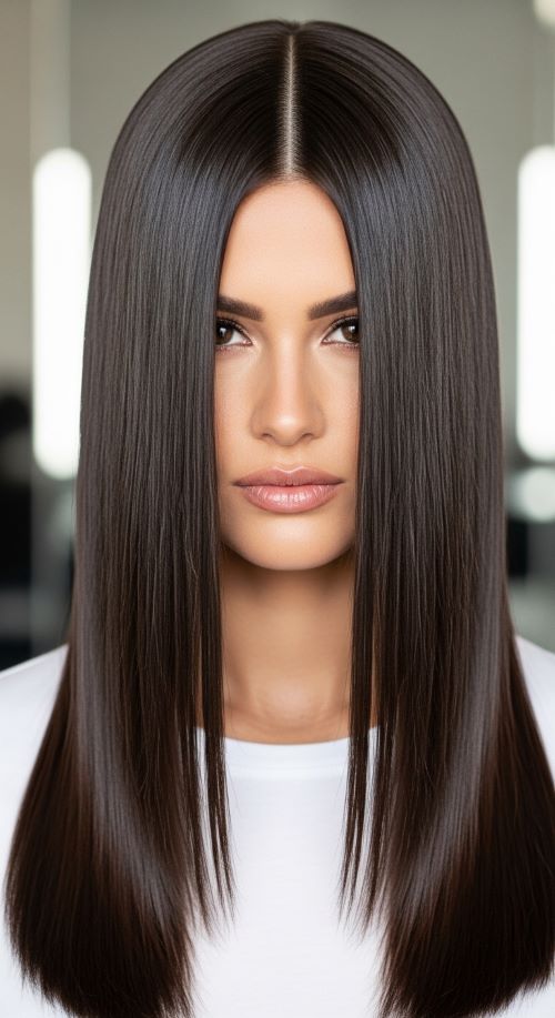 Sleek Straight Hair with a Middle Part