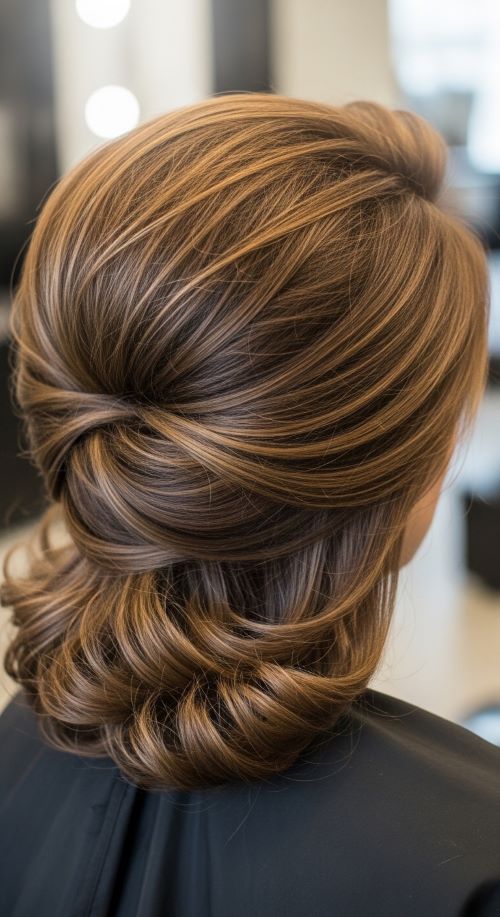 If hair feels thin, clip-in extensions or even a small claw clip hidden underneath can create fullness without cost.