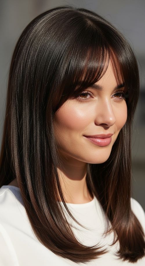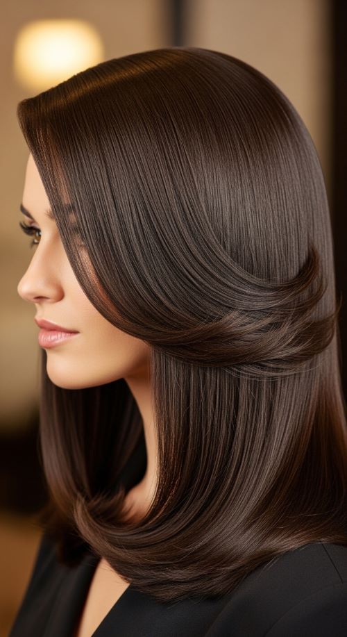 Invisible layers add movement without obvious texture. Ask for soft internal layering. Straight hair still appears smooth but flows naturally. Use minimal product to maintain shine. This style works well for thick hair needing shape.