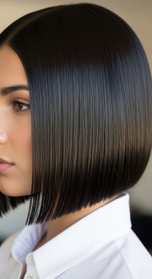 The glass hair bob focuses on reflection and precision. Hair appears almost mirror-like when styled correctly. Start with a smoothing shampoo followed by a lightweight conditioner. Blow-dry using tension with a round or paddle brush. The key is directing airflow downward. Use a flat iron slowly from root to tip while keeping sections thin. Drugstore heat protectants work perfectly fine here. Finish with a shine serum focused on mid-lengths only. Too much product near roots removes movement. Regular trims keep the bob sharp. If you want extra polish, run a silk scarf lightly over finished hair to tame static. This hairstyle works beautifully for busy schedules because it holds its shape for days with minimal restyling.