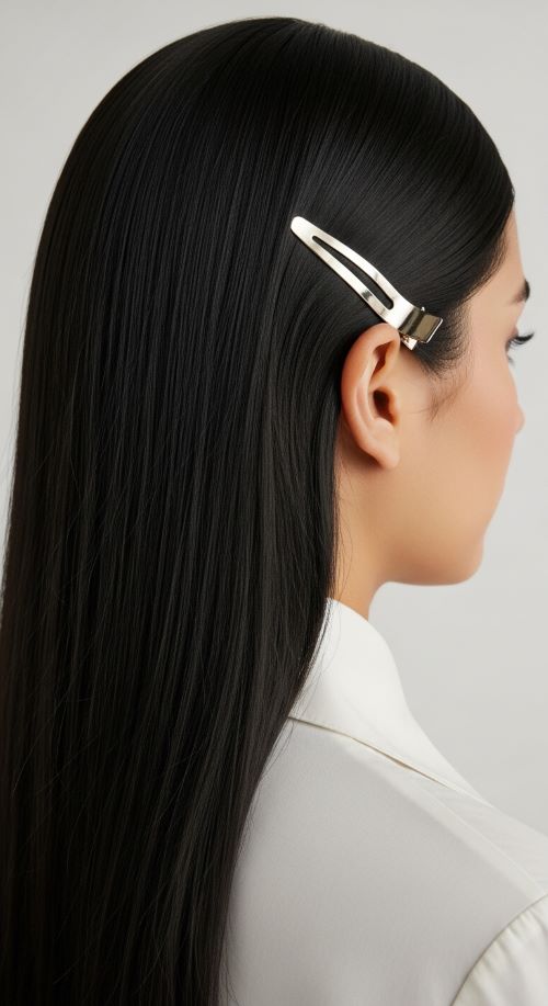 Accessories instantly refresh straight hair. Use affordable clips or barrettes to add interest. Place the clip above one ear for a clean finish. Keep hair smooth using light serum.