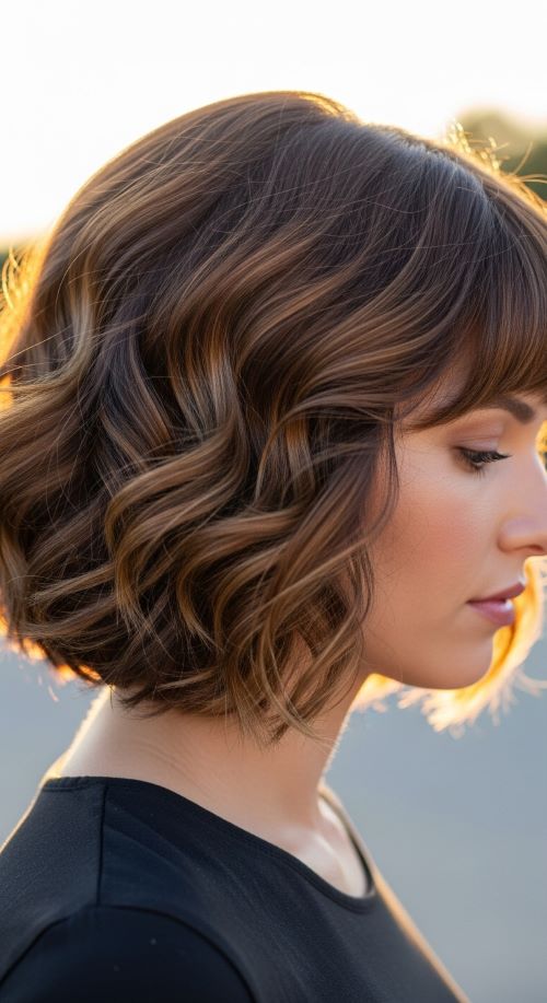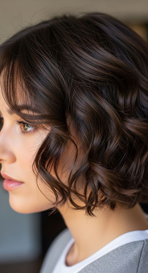 A fringe softens a bob and adds movement. Curl-friendly gel keeps it in place. Trim regularly at home or with a stylist to maintain shape. A fringe works with all short curl types and is easy to style.