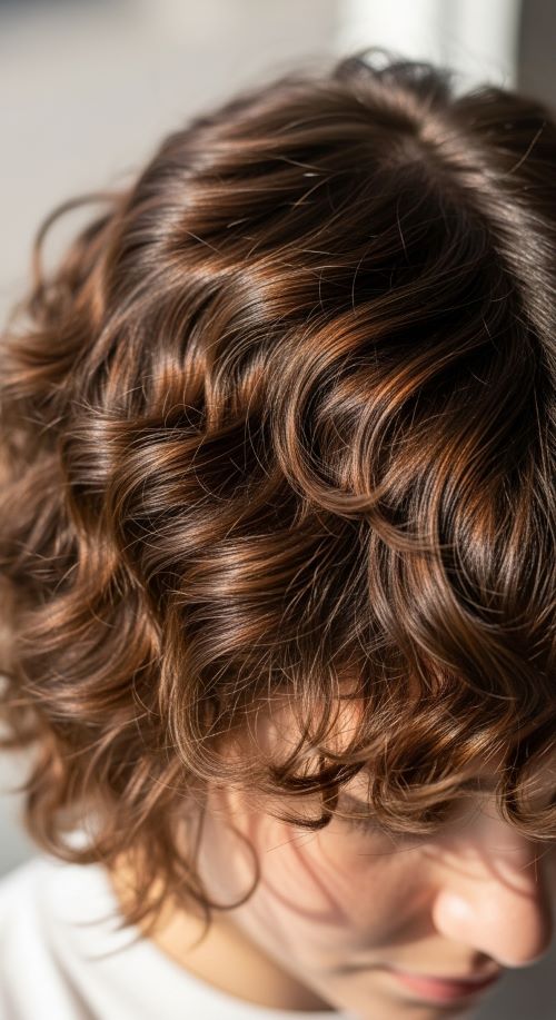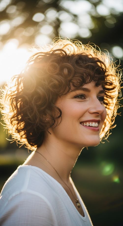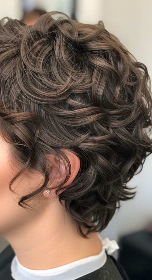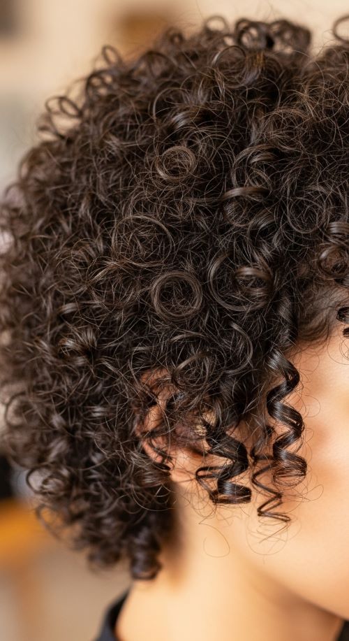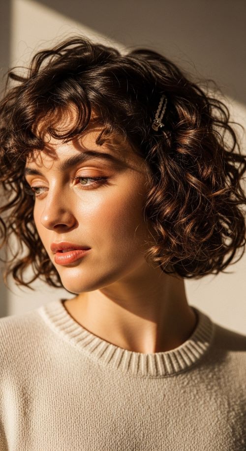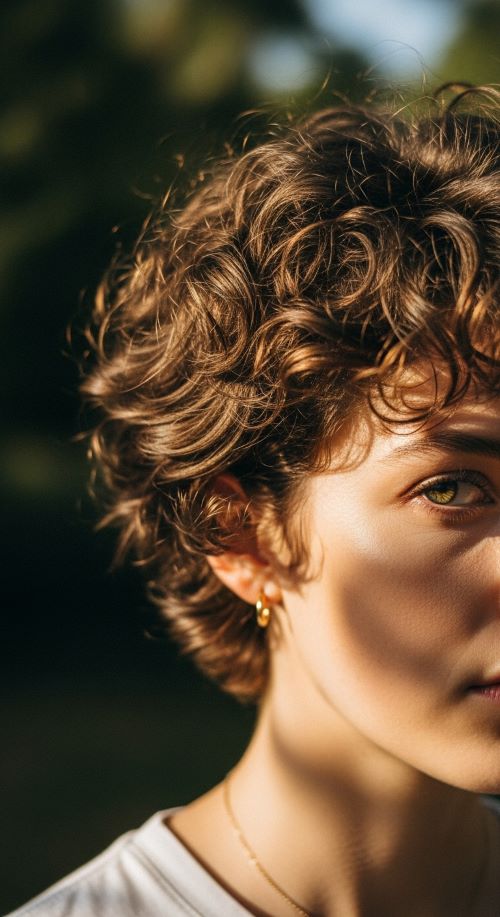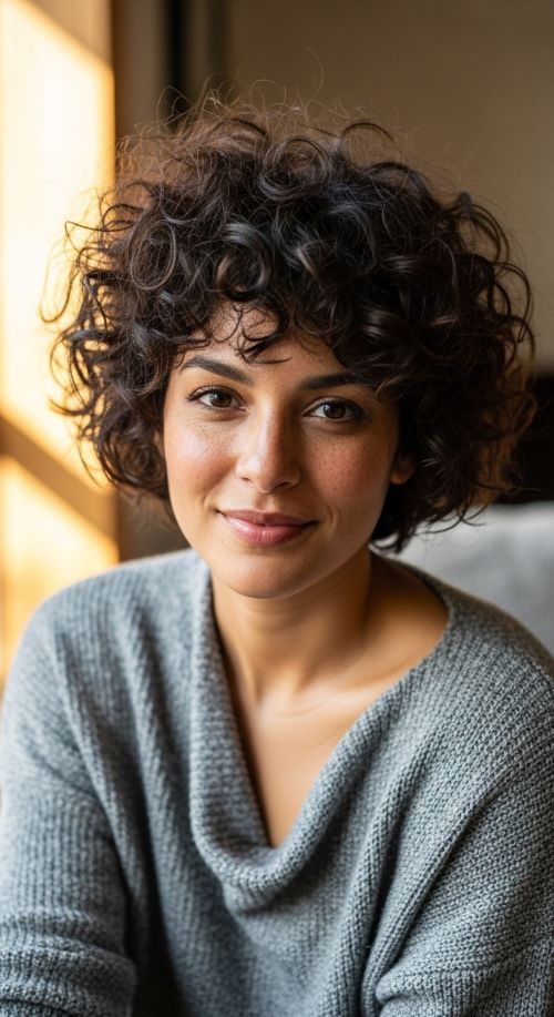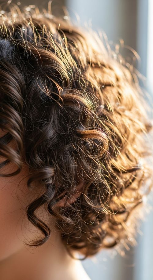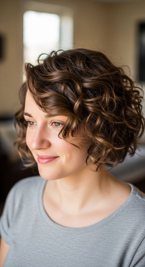 Tousled curls look casual and effortless. Use fingers to style instead of brushes. DIY salt spray enhances texture. Perfect for busy mornings, this style keeps short curls lively without daily maintenance.