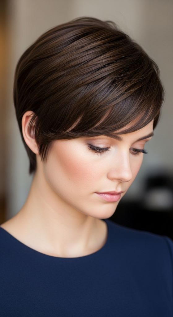 - Layered bangs: If you’re not afraid of a little edge, try incorporating bangs into your pixie. Soft, side-swept bangs can add drama and complement the shape of your face.
